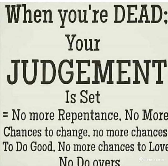 “And as it is appointed unto men once to die, but after this the judgment: So Christ was once offered to bear the sins of many; and unto them that look for him shall he appear the second time without sin unto salvation”. (Hebrews 9:27-28 KJV).